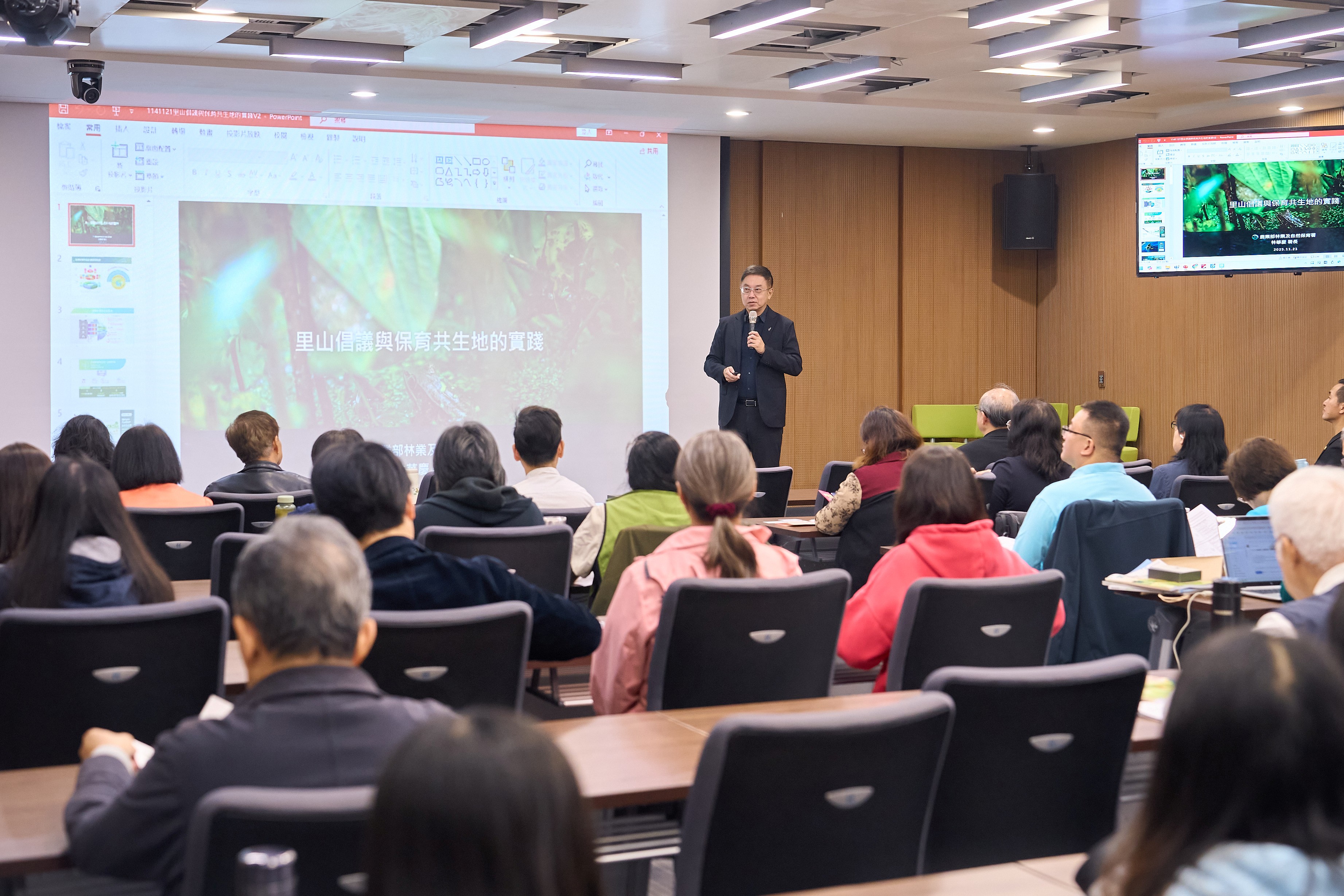 會中,農業部林業及自然保育署長林華慶以「里山倡議與保育共生地的實踐」為題發表演講。林華慶指出,聯合國SDGs永續發展指標所追求人類的社會及經濟發展奠基在良好的環境與生態條件上,其中生物多樣性更是人類得以永續發展的重要基礎。林華慶以人體系統譬喻,一個健全的有機體,除了依靠中樞系統,亦需要周邊循環系統的支持。為此,林保署在2018年啟動「國土生態保育綠色網絡建置計畫」,以中央山脈國有山林為軸心,串連淺山、平原和海岸延伸藍綠廊帶,搭配生態服務給付方案,促成友善農田、里山聚落和部落保留地等兼具生計與保育的在地行動,「在臺灣推動生物多樣性,一定要扎根社區。」林華慶強調。