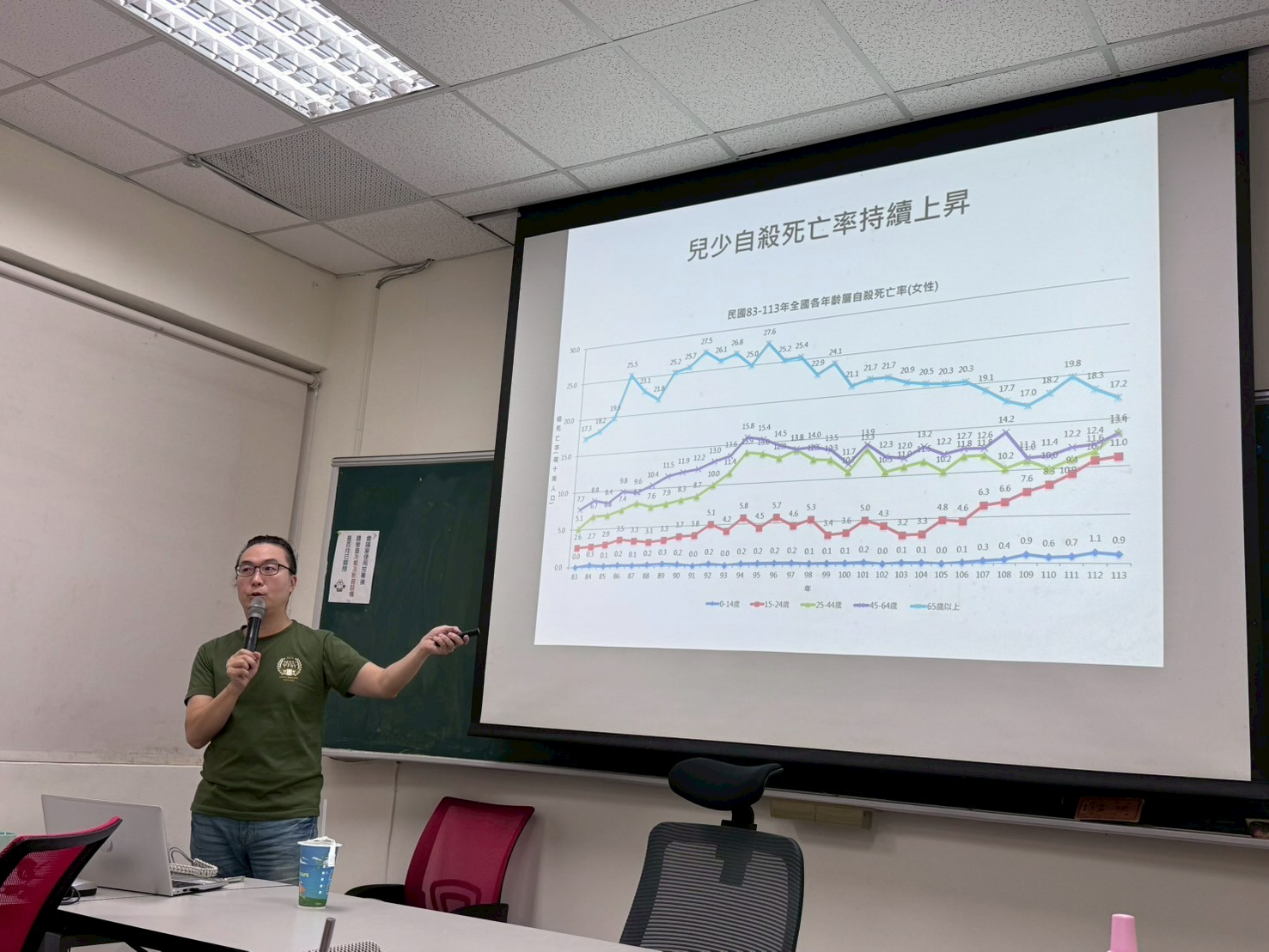 蕭博士演講中透過自殺防治中心的數據說明,自民國 106 年起,臺灣兒少自殺死亡率持續上升,同樣的現象也在許多其他國家被觀察到,這顯示自殺率上升的問題在全球持續延燒,且背後共同的機制都與3C和社群媒體的使用高度相關。演講中也指出,隨著科技的進步,3C產品影響人類生活的各個層面,包括學習、娛樂、社交等等的模式也反映出現代人習慣隨時取得自己喜歡的內容、跳過不喜歡的內容,這看似便利的生活模式,實則大大影響人類的注意力、情緒調節、高階認知等功能,進而與心理健康有不可輕忽的關係。