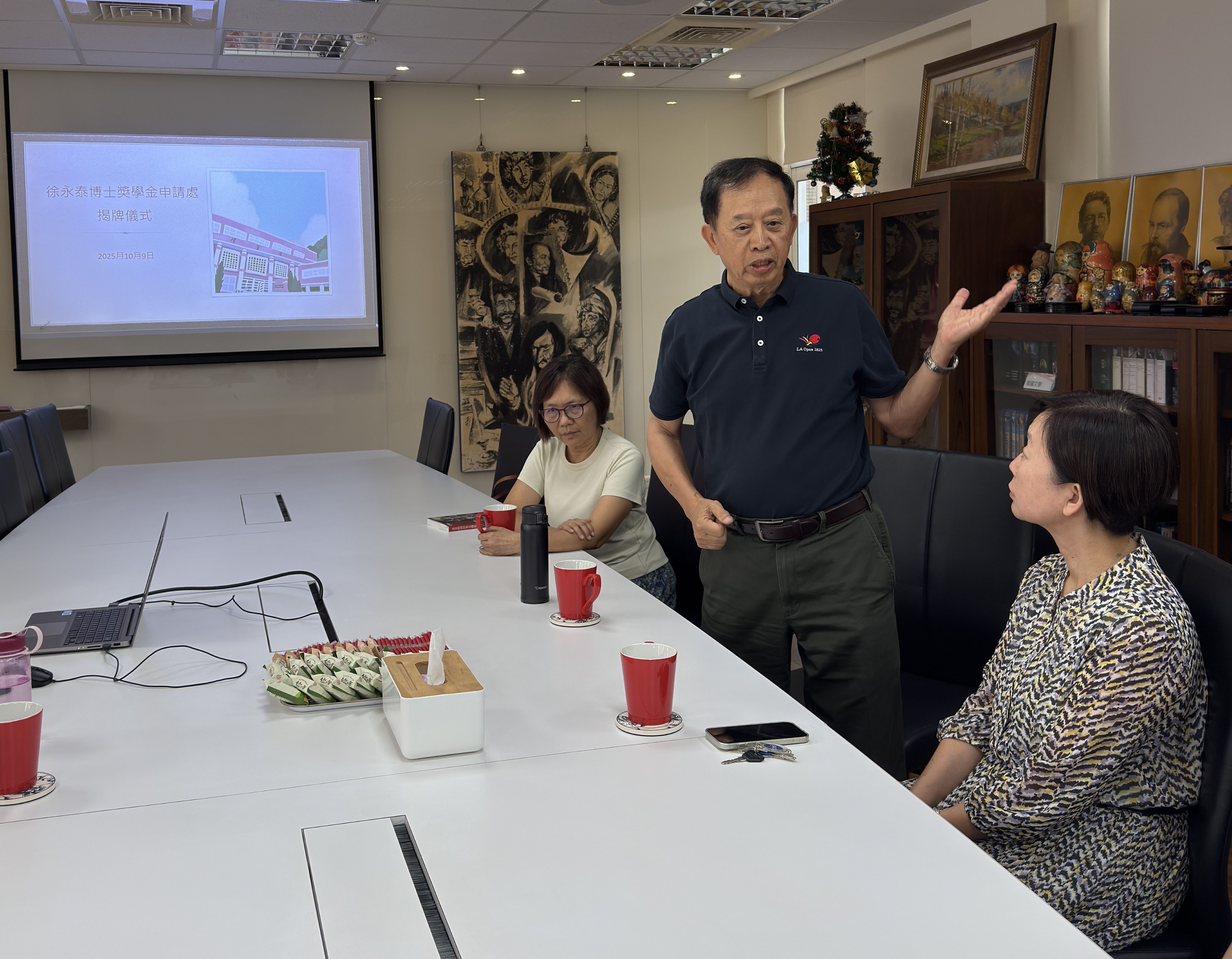 在與會貴賓的共同見證下,「徐永泰博士獎學金申請處」木牌正式揭幕,象徵斯語系與徐博士之間的深厚情誼與永續傳承。此次揭牌儀式不僅是向徐博士的慷慨義舉致敬,更象徵政大語言與文化教育的持續深化與拓展。