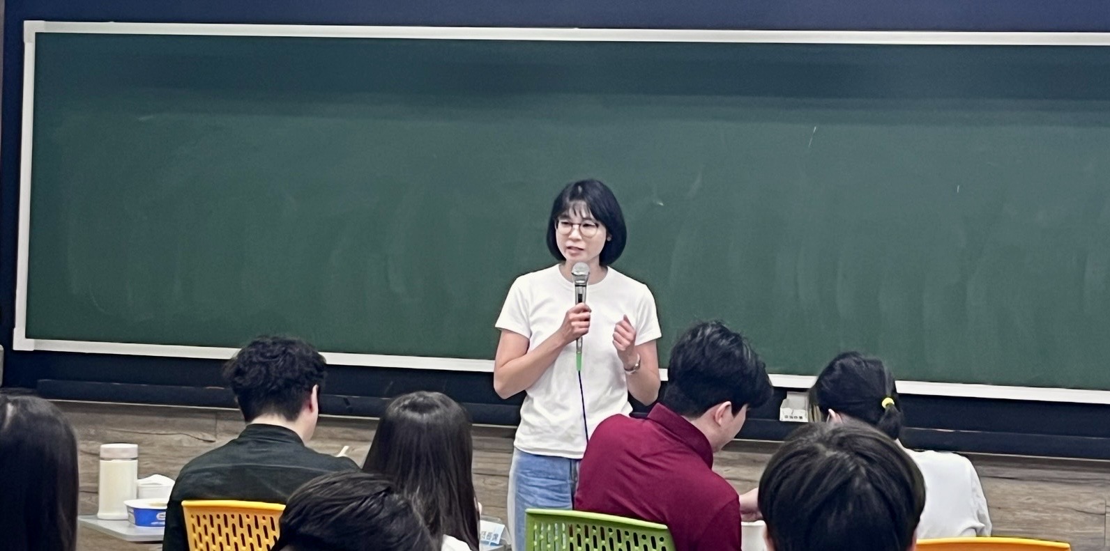 「身心健康最重要,鼓勵大家在努力之餘也要照顧自己。」江彌修老師以指導研究多年的教學經驗對同學說出了關懷同學的話語。林士貴老師也鼓勵同學能在研究的路上順利前行。受邀的心理師王昱純提醒同學若在感情、課業或人際上感到壓力,都可以主動尋求協助。有身心壓力時也可以多運用系上學輔導師等輔導資源。