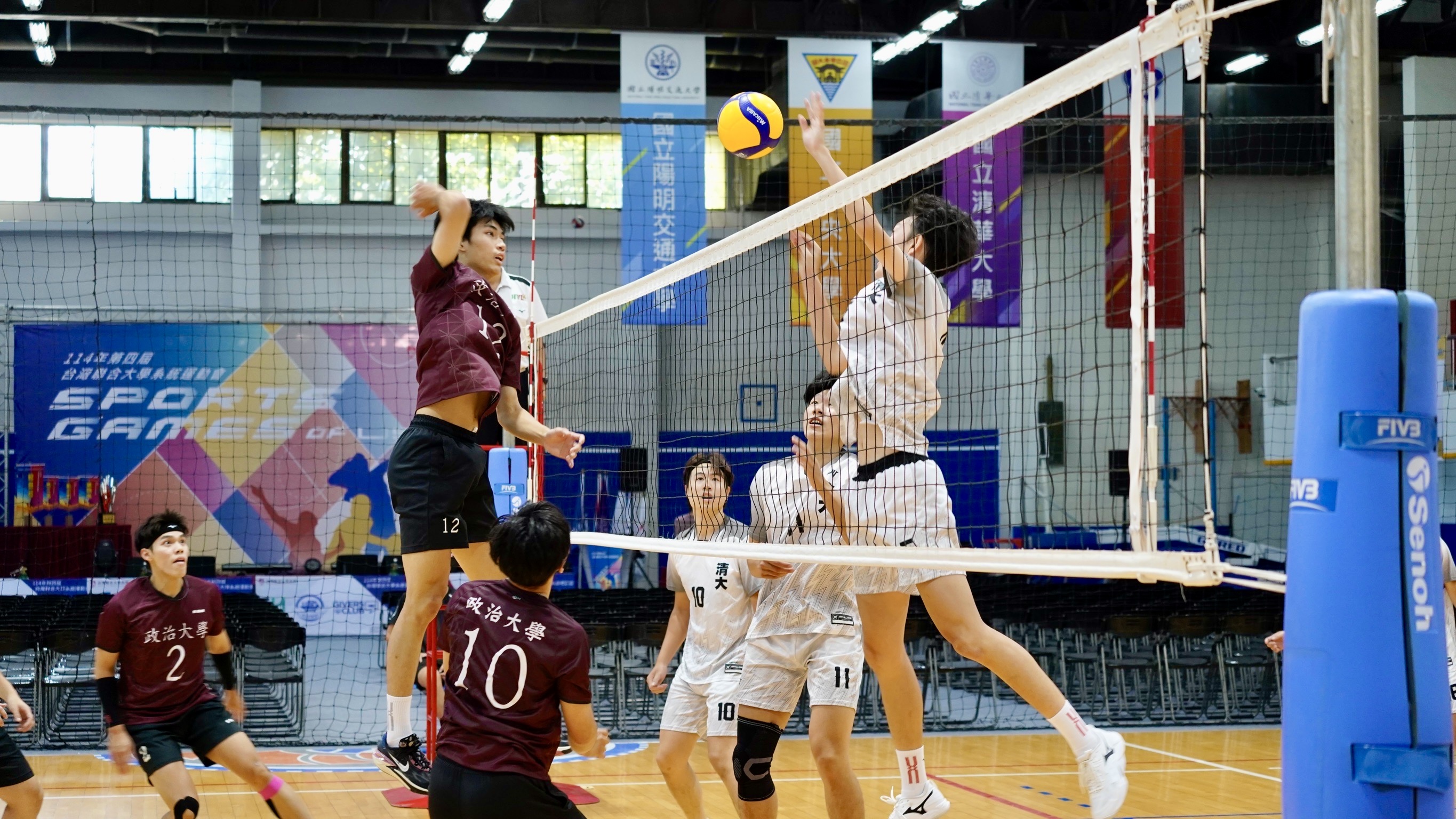 「政大政大政大!加油加油加油!」吶喊聲於體育館內迴盪,114名政大校隊選手整裝上場,於攻防轉換間疾速往返、揮灑汗水,一道道擊出的弧線化作關鍵得分,展現團隊默契與不懈拼勁。今年政大代表隊以新陣容迎戰,各項隊伍增添多位新血,球員們在磨合、調整節奏的過程中,逐漸培養出團隊凝聚力。