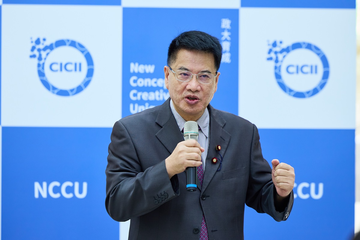 典禮由產創總中心營運長林士淵主持,他致詞表示,能見證如此具有宗教精神與文化意涵的藝術品進駐政大,深感榮幸與感動。同時也特別感謝陳俊吉學長的慷慨捐贈,使中心不僅成為創新與產學交流的基地,更成為藝術、人文與信仰交會的場所,也表示:「這兩件作品不僅代表藝術價值,更傳遞了慈愛與智慧的精神,這正是政大教育的核心精神之一。」