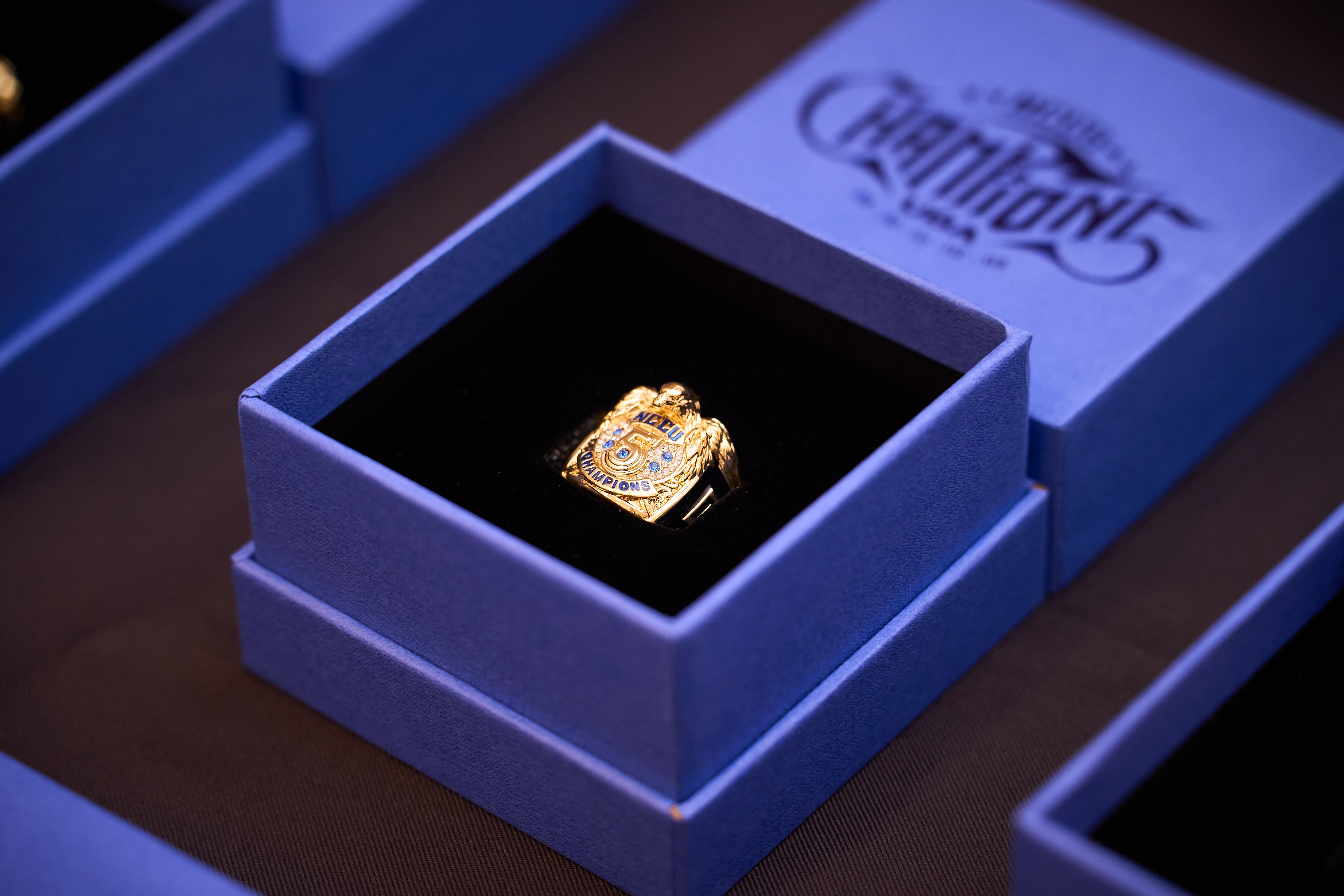 五連霸冠軍戒由長年和雄鷹合作的知名時裝品牌APUJAN詹朴,和金屬家飾品牌KANARI王翔共同操刀,將政大雄鷹的吉祥物獅鷹獸融入設計之中,細節蘊含豐富寓意。戒面以象徵「50連勝」與「五連霸」的數字「5」層層疊加,象徵雄鷹一步步登頂巔峰的歷程;戒環一側刻有全體球員的背號,記念團隊共同締造的榮耀。設計師希望,戒指可以陪伴眾人,成為一輩子難得的紀念,並笑著預告:「我們也會趕快進行第六顆的設計。」