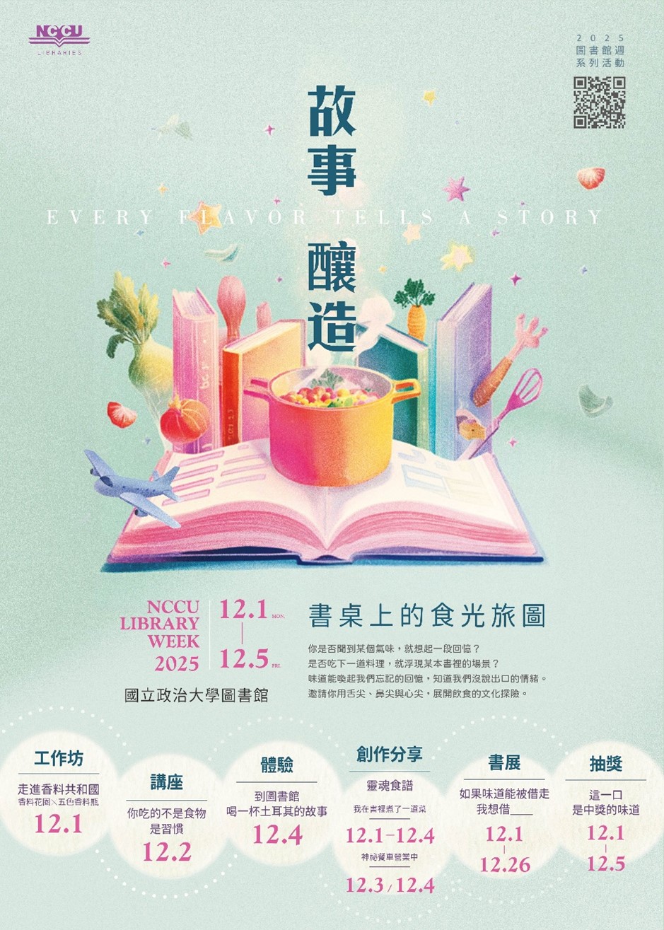 |2025圖書館週以「故事釀造:書桌上的食光旅圖」為主題,於12月1日至12月5日推出一系列活動 |