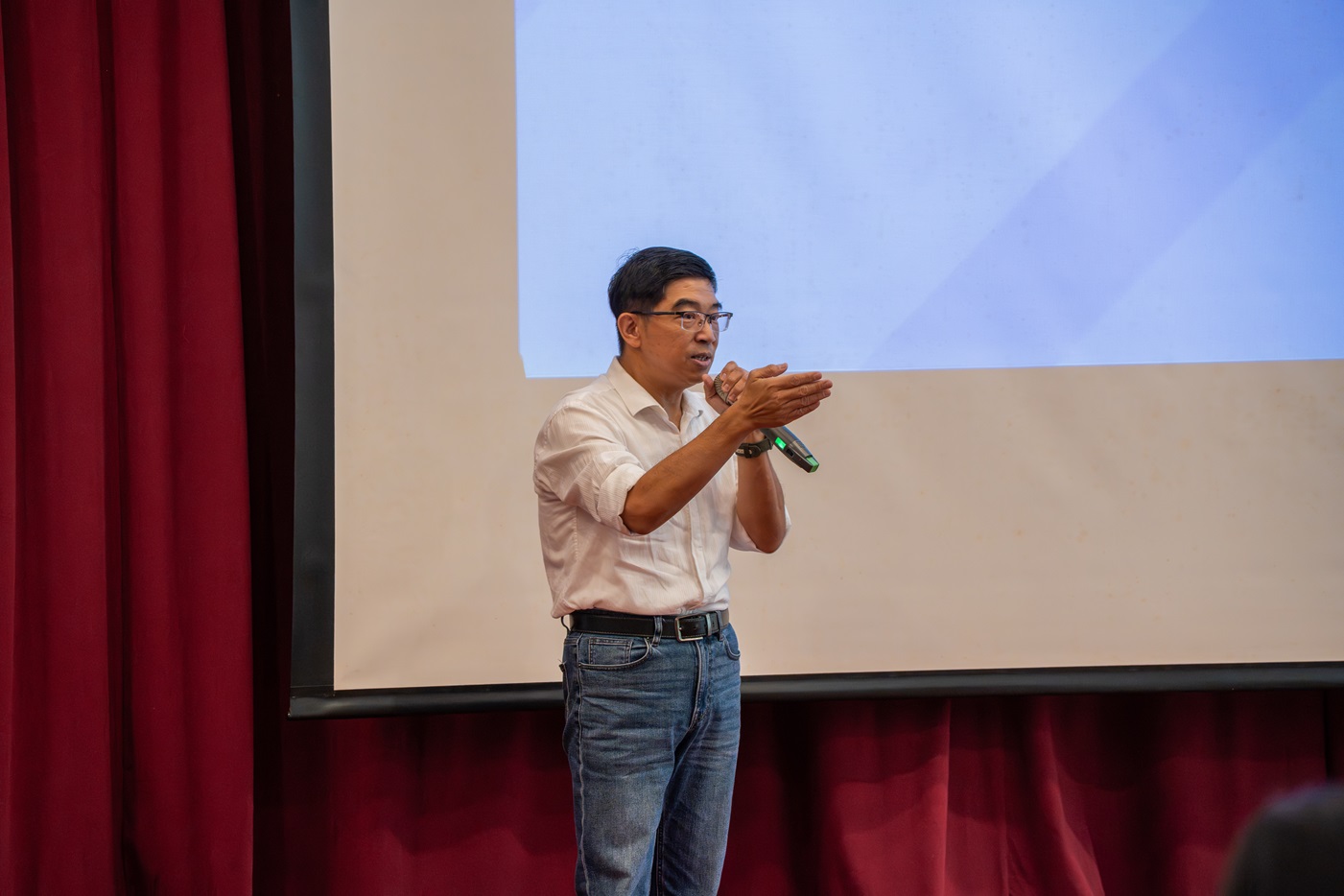 盧顧問以「行銷沒有標準答案」開場,提醒學生所有行銷問題都必須回到「人」的行為與需求。他以生活化的方式引導學生思考,提出「世界上最困難的兩件事」作為切入:第一,把別人口袋的錢放進自己的口袋;第二,把自己的想法放進別人的腦袋。他說,能讓顧客願意接受一個想法,顧客才會願意付費,這正是行銷最核心的精神。他也舉例說明行銷與銷售的不同,指出「銷售是把東西賣出去,行銷是讓東西變得好賣」,讓學生從日常情境中理解兩者的差異。