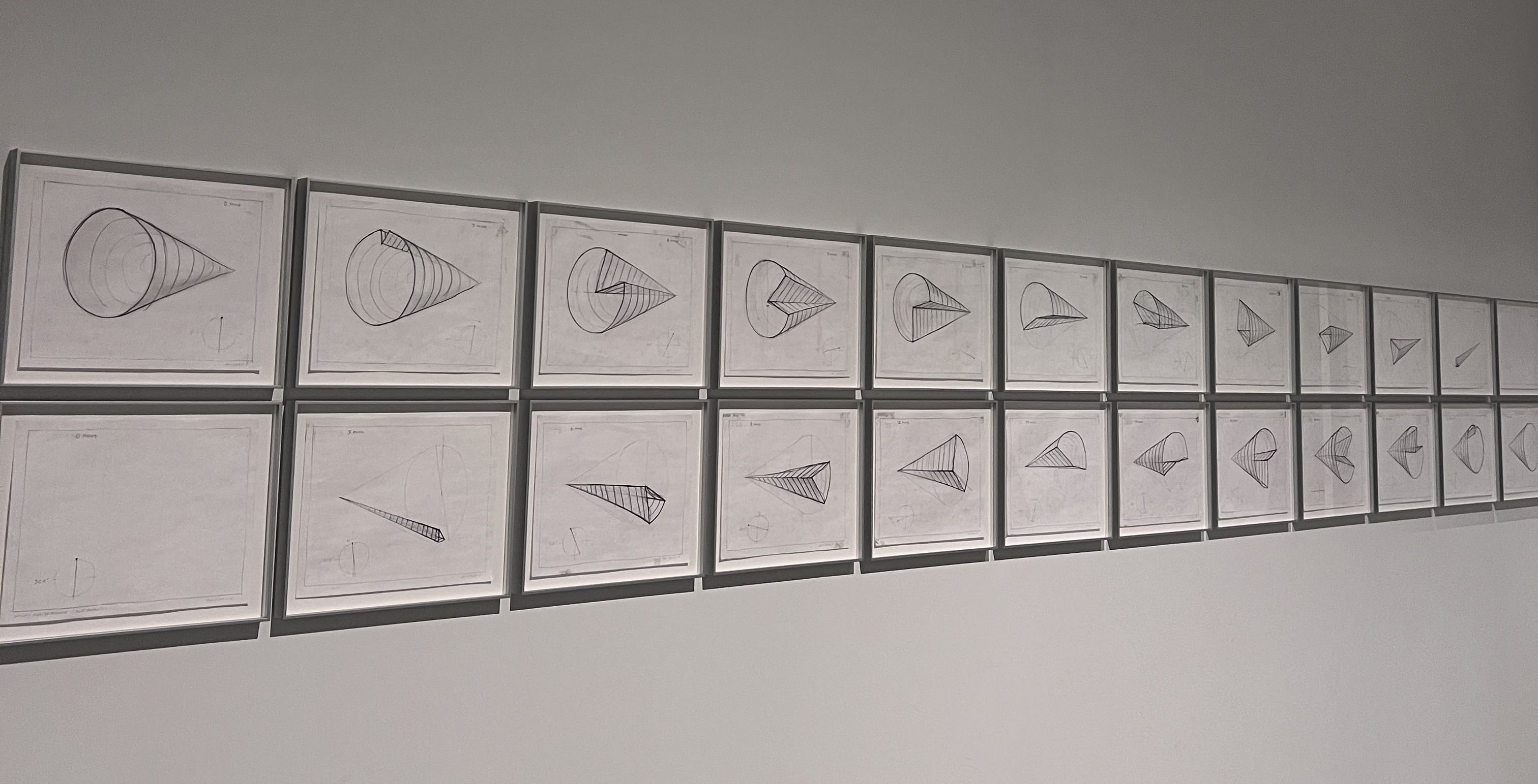 When approaching the projection, the light takes on a “thicker,” more substantial texture; farther away, it dissolves into something like floating dust. The effect is especially striking in Line Describing a Cone, where the movement of people in the gallery subtly shifts the beam's trajectory, making the audience feel like an integral part of the artwork itself.