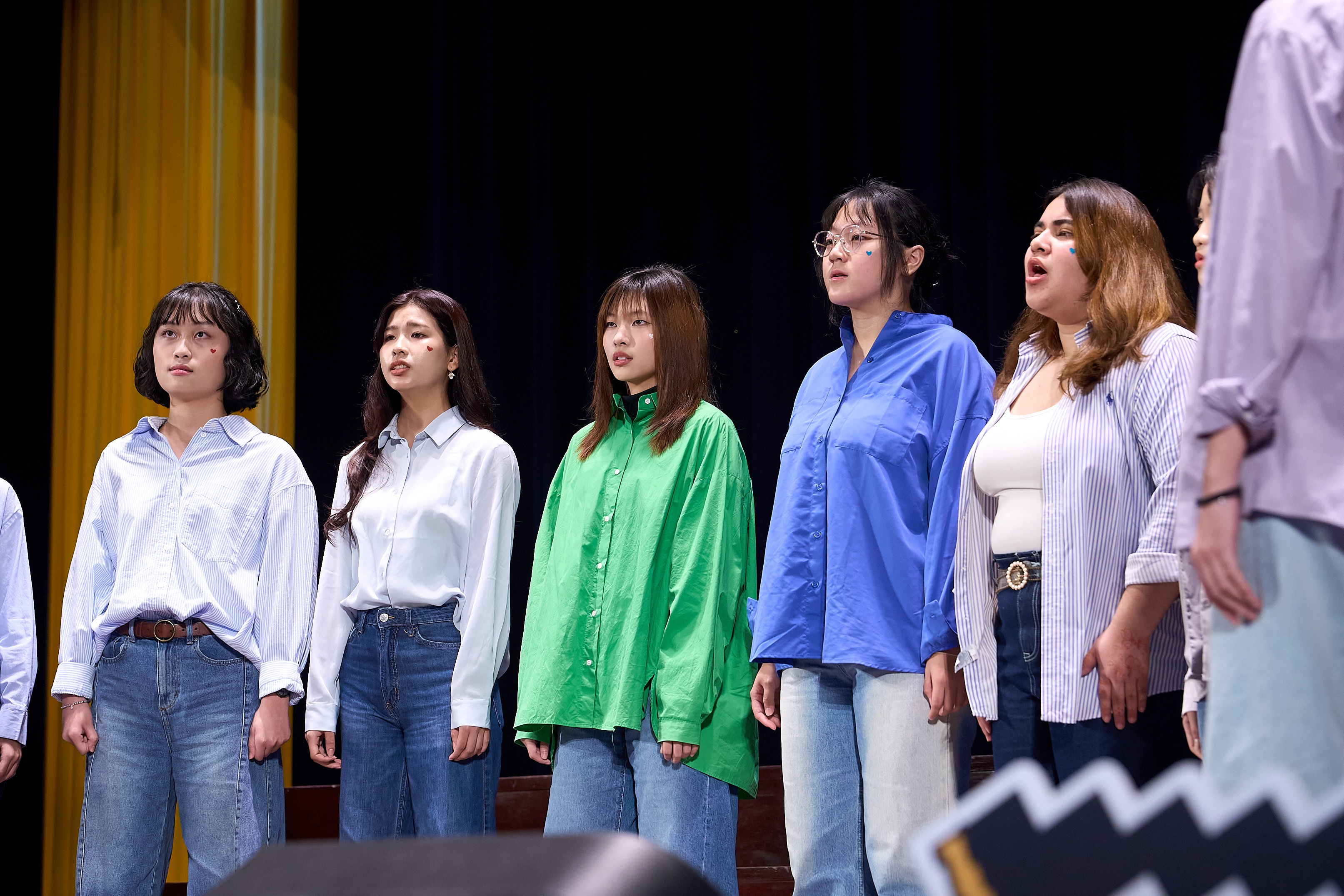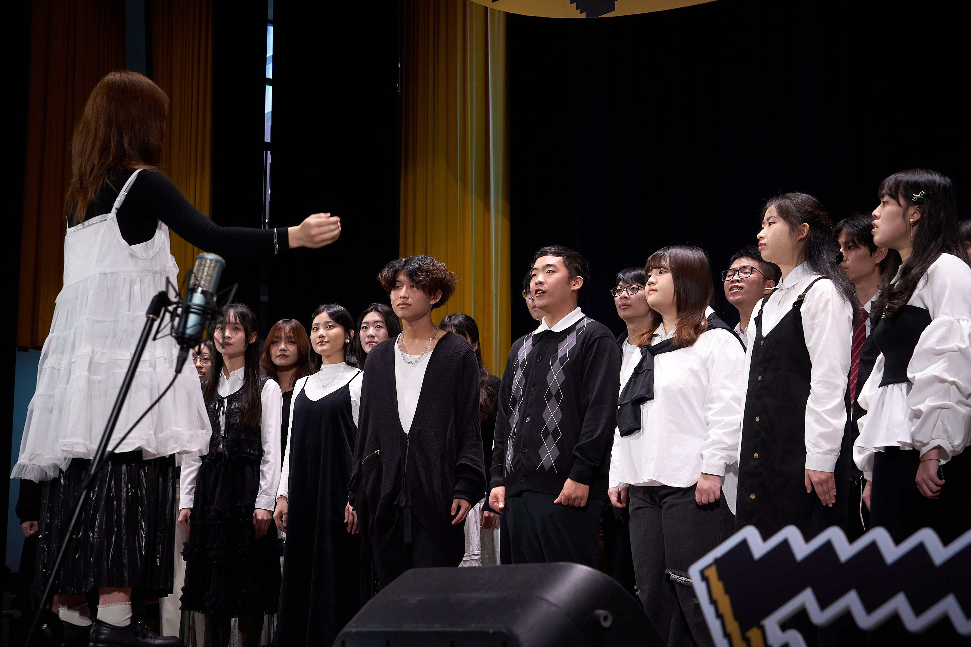 下半場尾聲,法律系選擇演唱客家歌曲〈褒忠讚歌〉。他們穿著客家服飾登臺,歌曲從柔美悠遠的旋律逐步遞進,激揚地歌頌著為守護家園而犧牲的客家義民,揮舞著法學院的大旗,用樂音展現出法律人的正直精神與肩負的社會責任;應數系則是延續多年創意傳統,帶來短劇〈應數導音數〉,融合多首KPOP熱門金曲、迷因組曲與爆笑時事梗,以趣味的方式帶領現場師生一同體會數學之美,贏得現場觀眾熱烈掌聲,現場氣氛High到最高點!