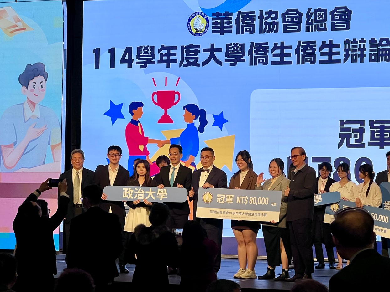 華僑協會總會於 11 月 23 日舉辦「114 學年度僑生及港澳生辯論比賽」,國立政治大學代表隊由教育四楊艾昕、廣電四吳若芑、新聞三劉俐函及中文一張世揚組成。政大辯士們憑藉穩健臺風、縝密邏輯及靈活攻防,在眾多好手中脫穎而出,勇奪本屆冠軍,成功達成二連霸,表現相當亮眼。