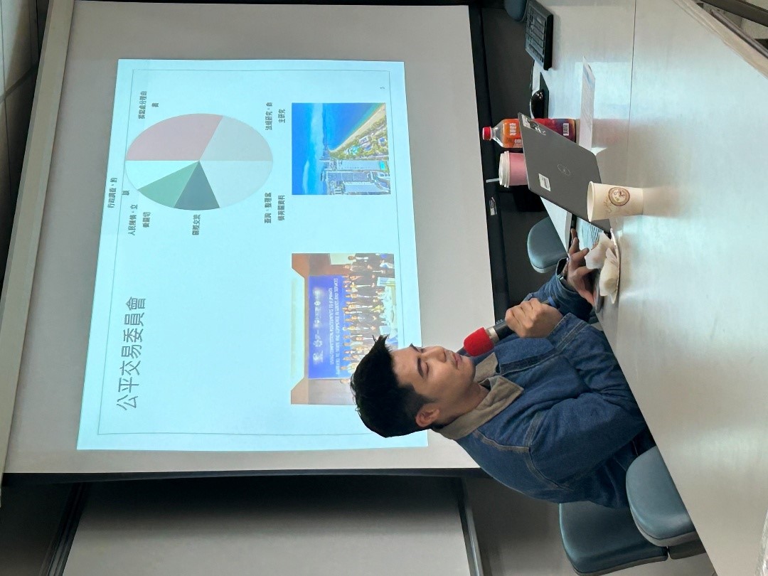 隨後學長轉戰英國在台辦事處,適逢英國脫歐(Brexit)的時機,正需要既有經貿專長又懂WTO規則的人才。在歐盟體系中,每個成員國把一部分的主權撥給歐盟來行使(其中最主要的就是經貿政策),所以當英國面臨脫歐時,很積極在海外市場尋找經貿談判的人才。在孟洲學長加入以後,主要的任務便是協助脫歐後英國的WTO過渡(Transition),即從歐盟貿易體系過渡到獨立的會員,與其他會員重新談判關稅表與服務開放之承諾表。這份工作讓學長覺得很有使命感,包含在此領域代表臺灣去參加很多國際的會議,如APEC或OECD等國際會議,也讓學長體悟到經貿領域是可以平等交流的場域。學長十分感謝系上關於WTO扎實的訓練,在對農產品進口的嚴格管制下,英國豬肉出口到台灣才順利在學長手上得到突破。此外,學長也提到台灣當年的口蹄疫防疫其實借鏡了英國經驗,這正是國際經貿交流帶動技術與法規升級的最佳實例。學長也提及受益於在學期間系上撰寫經貿法訊的嚴謹訓練,使得他於英國在台辦事處能以英文撰寫專業經濟報告,並將其提供於英國政府參考作決策。不過,孟洲學長坦言曾有過內在矛盾:「身為台灣人,為什麼要幫外國政府或企業說話?」但學長還是相信經濟學的比較利益法則,透過跨國貿易交換能增進全球福祉,其互動過程亦可成為推動各國法規升級、提升環境治理水準與促進市場開放的重要力量。